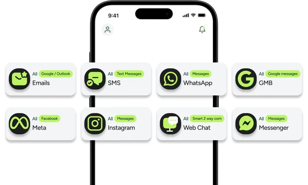 Engage with leads and customers wherever they are. SMS, email, WhatsApp, social media. Manage it all from a single inbox.